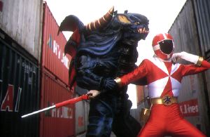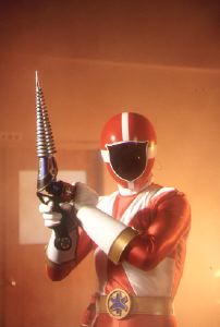 Go-Red holding Beak Driller (sort of looks like MegaRed's Drill Sabre from Megaranger)